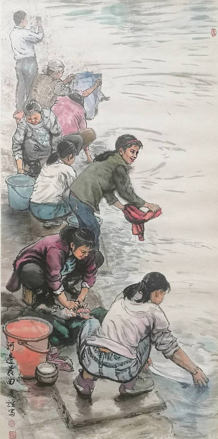 《河边晨曲》 中国画 138X69cm 2021年