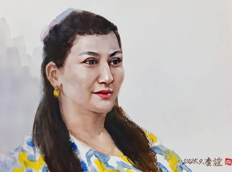 《维吾尔族姑娘》 水彩画 31X41cm 2025年