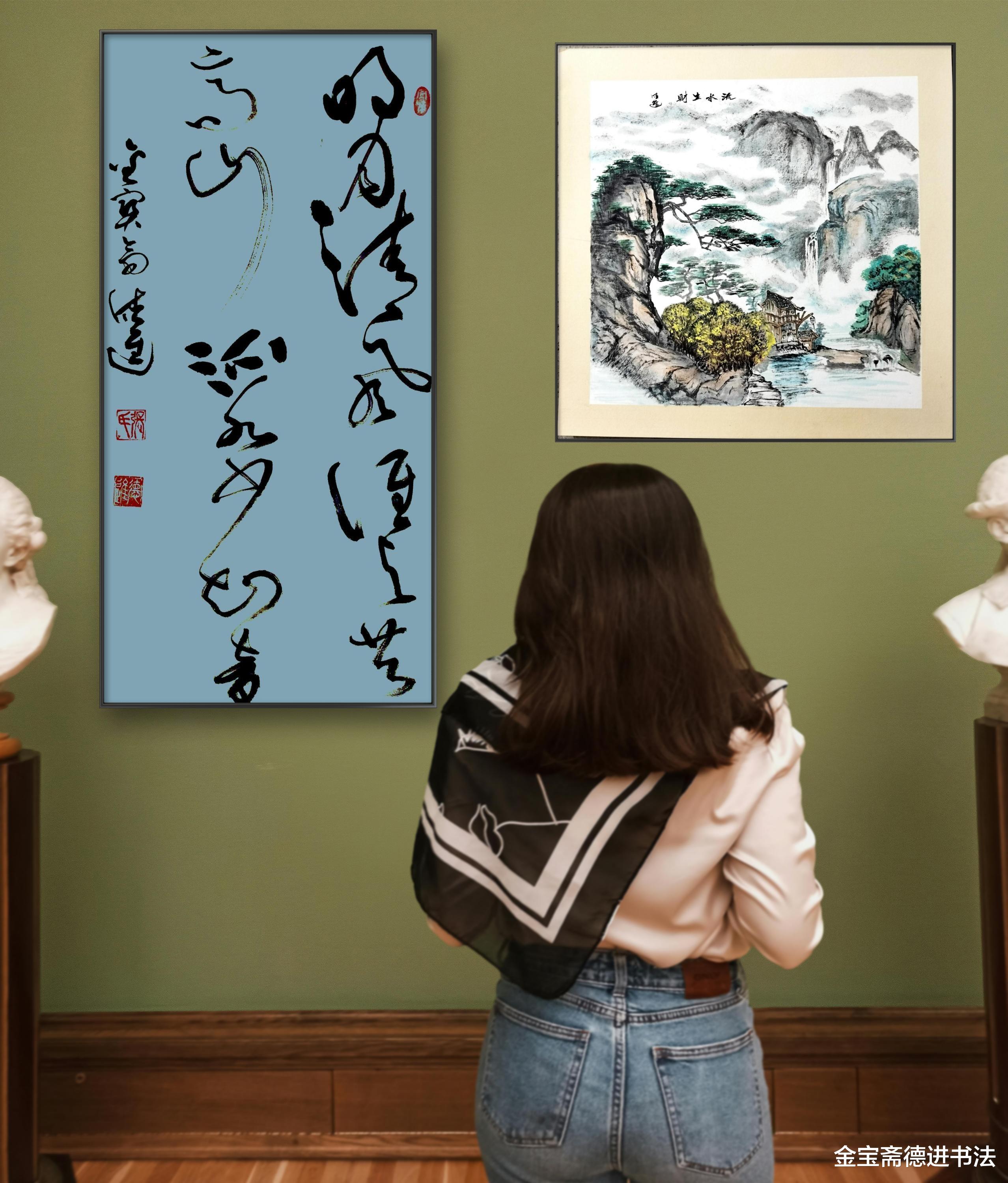 整幅作品无需刻意规整,草书的随性与狂放,恰能承载诗句的复杂心境——景致的美与心境的愁交织,期盼与失落共生,让墨香中的线条,成为孤独最动人的注脚。