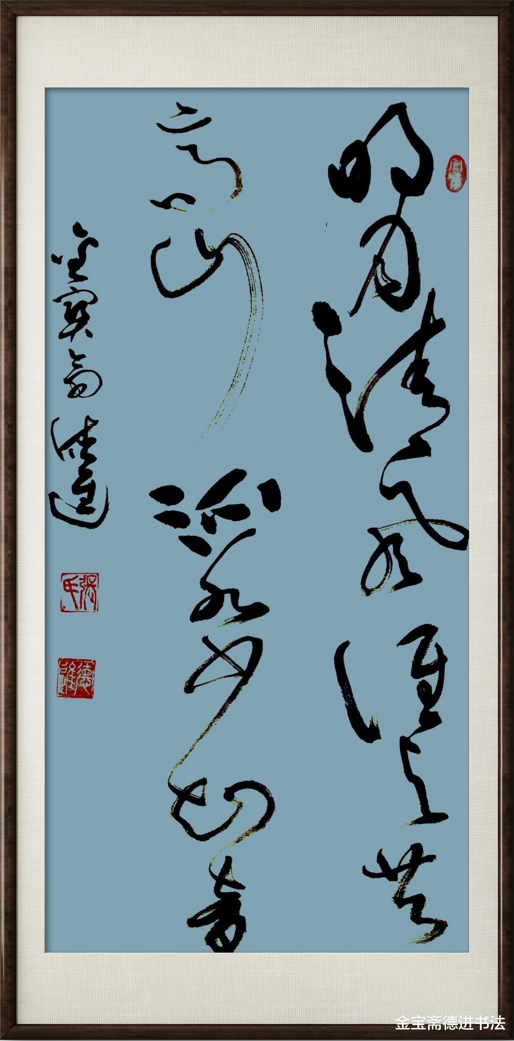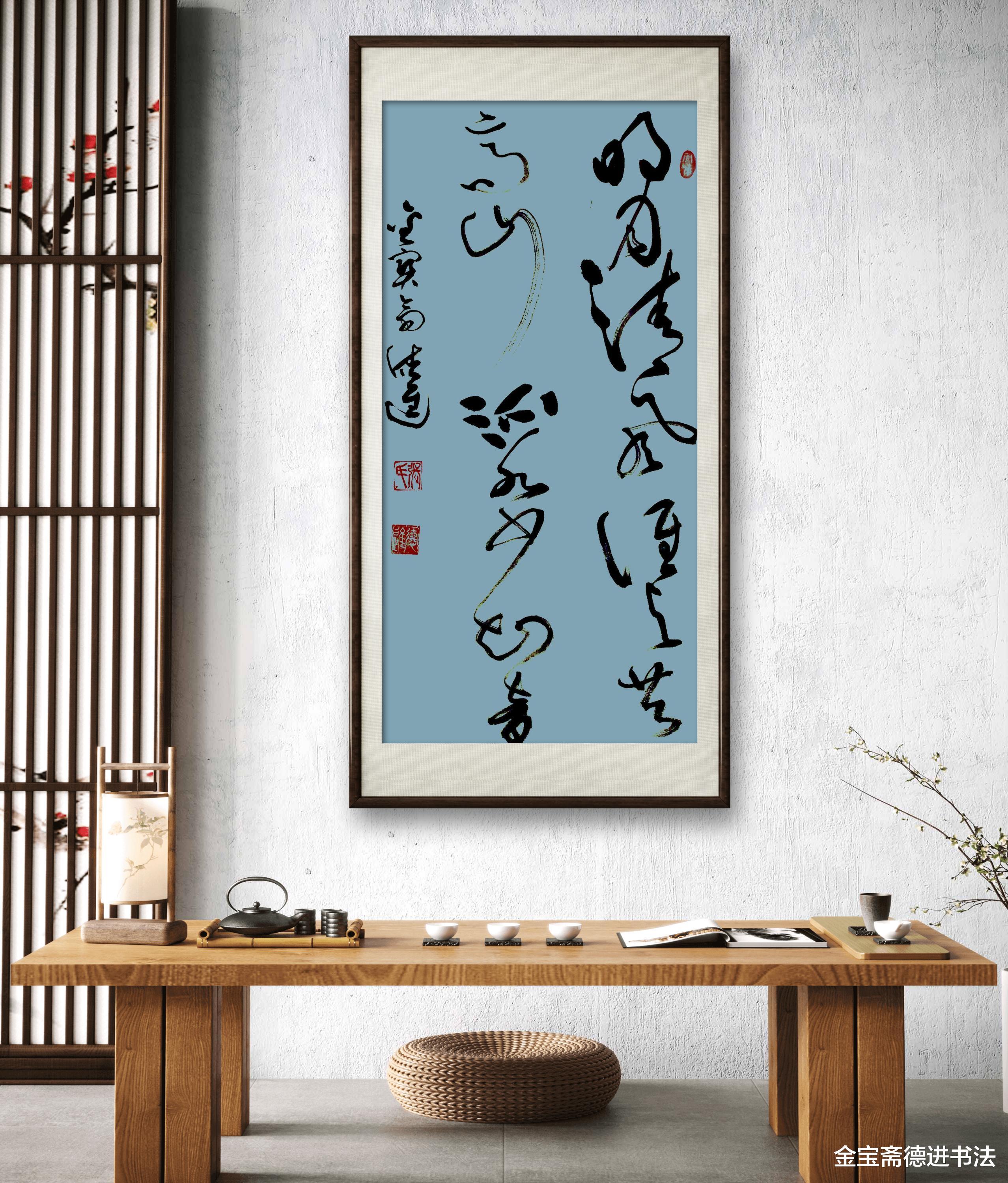 以草书创作此名句,恰是让笔墨成为情感的延伸,让孤独与怅惘在线条间流转。草书不重规整而重意趣,与诗句的随性抒怀天然契合。开篇“清风明月”四字,可以轻盈婉转的笔锋起笔,墨色偏淡如清风拂过,线条舒展似月光倾泻,营造出景致的空灵,却在笔画衔接处暗藏滞涩,暗合“谁与共”的茫然。