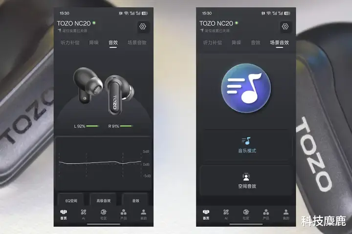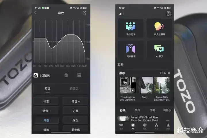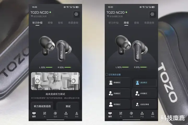 说到配套APP,TOZO这款真的算“标杆级”。界面很清爽,没有花里胡哨的功能,连我这种不太会玩数码产品的人,上手几分钟就摸清了操作逻辑。里面的EQ功能让我挺意外,除了常规的预设,还有个“听力补偿”模式——跟着提示听几分钟声音测试,就能生成专属EQ,我试了下,原本有些刺耳的高频变得柔和了,细节也更清晰。