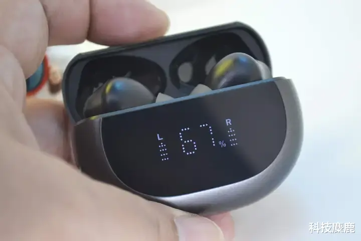 就说NC20单论颜值,这锖黑色的磨砂质感已经很对我胃口,尤其是充电盒上的点阵屏,瞬间戳中了我的“复古情结”——像极了老式卡座的显示窗,比市面上千篇一律的LED屏多了点味道,而且不用开盖就能看剩余电量,出差时不用猜“还能撑多久”,实用又有设计感。