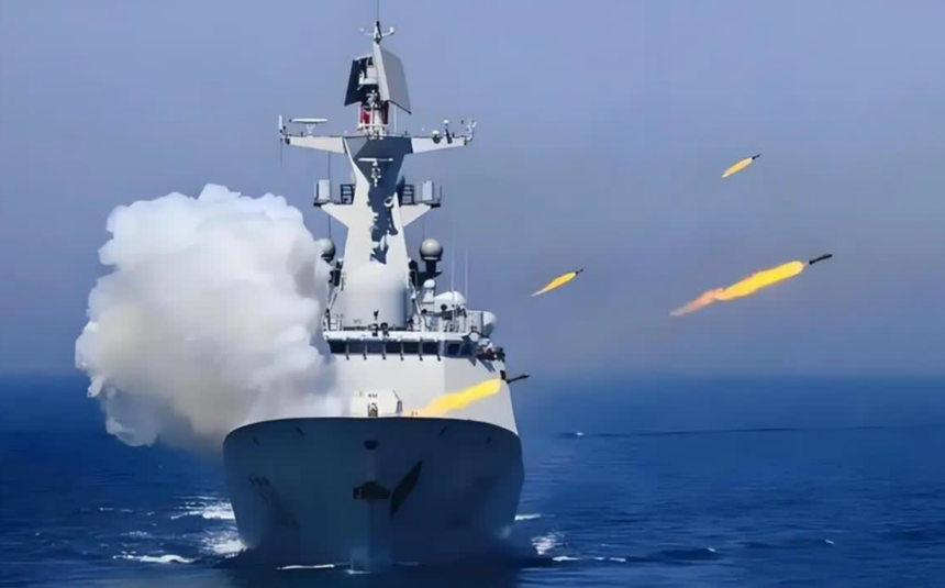8艘万吨级巨舰劈波斩浪,舰艏甲板上一排排导弹垂发单元井盖齐刷刷打开,海平面上瞬间布满火光。这是中国海军055型驱逐舰“火力全开”时可能呈现的场景。