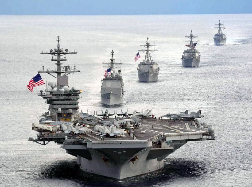 我们知道,一支典型的美军航母打击群,核心是一艘十万吨级核动力航母,配属1-2艘巡洋舰、3-4艘驱逐舰,外加水下至少1-2艘攻击型核潜艇。
