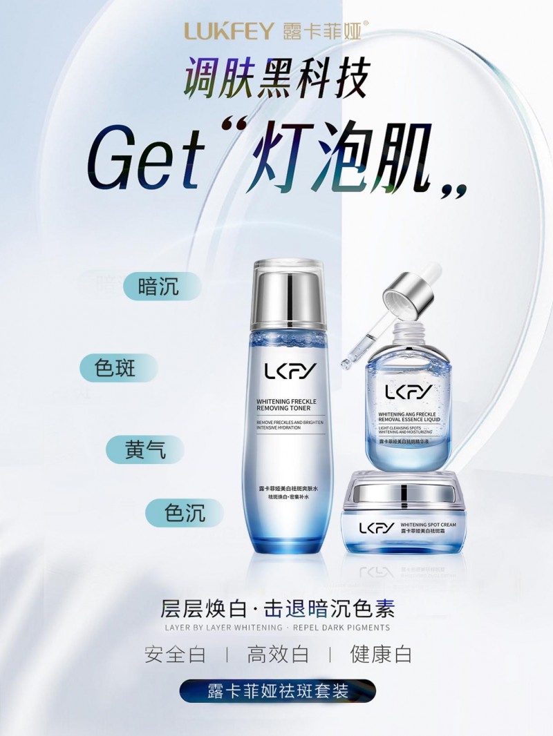 产品简介:露卡菲娅祛斑套装是一款专门针对肌肤问题研发的美白祛斑护肤品,适配20+至50+全年龄段斑点肌需求。20+人群的雀斑、晒斑,30+的妊娠斑、色素沉着;40+、50+的深层黄褐斑与老年斑等多种斑点都可以通过这个产品,实现全龄段、全类型色斑的针对性改善。