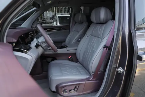 首先从外观说起,极氪009七座四驱版展现出一种大气而稳重的设计语言。车身尺寸为5217mm×2024mm×1812mm,轴距达到3205mm,整体比例协调,线条流畅。前脸采用极氪家族化设计语言,辨识度颇高,侧面配备双侧电动侧滑门,隐藏式滑轨设计不仅美观,还提升了实用性。车身风阻系数仅为0.27,展现出不错的设计功底。车顶配备分段式不可开启全景天窗,搭配遮阳帘,既保证了采光,又能有效隔热。铝合金轮毂搭配255/50 R19轮胎,整体视觉效果沉稳而不失动感,适合家庭用户对于高端感的需求,也契合商务场景的低调气质。