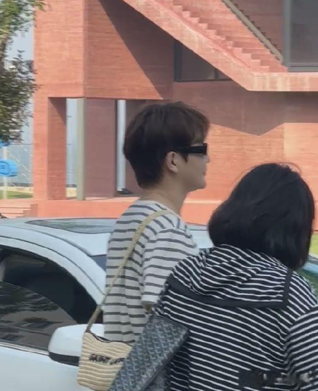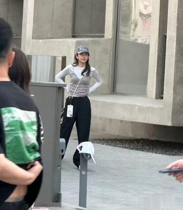 对方还拍到了张子萱,头戴棒球帽,身穿灰色吊带背心,搭配长袖,下身穿着深蓝色长裤,外面的温度那么高,张子萱还穿两件衣服,完全不怕热。