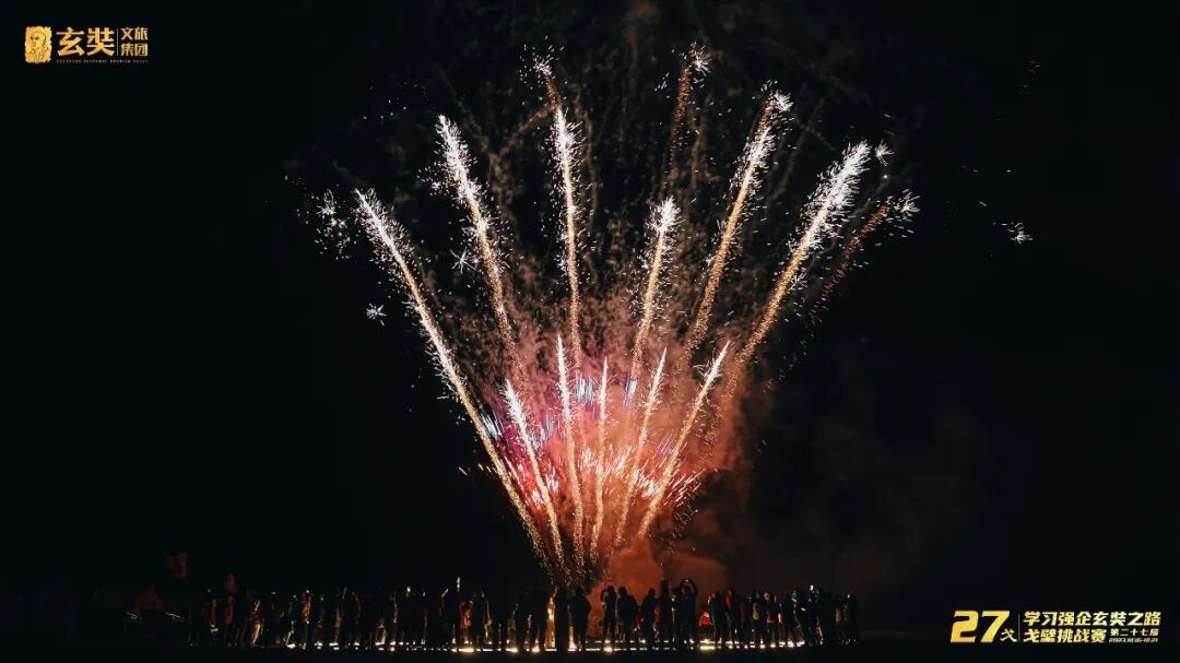 白天的艰难行走,并没有让夜晚的热情消散,璀璨的烟花、温暖的篝火,美味的烤全羊,为这一程“苦行”带来了别样的欢乐。戈友们围着篝火载歌载舞,欢笑撒满了大漠戈壁。
