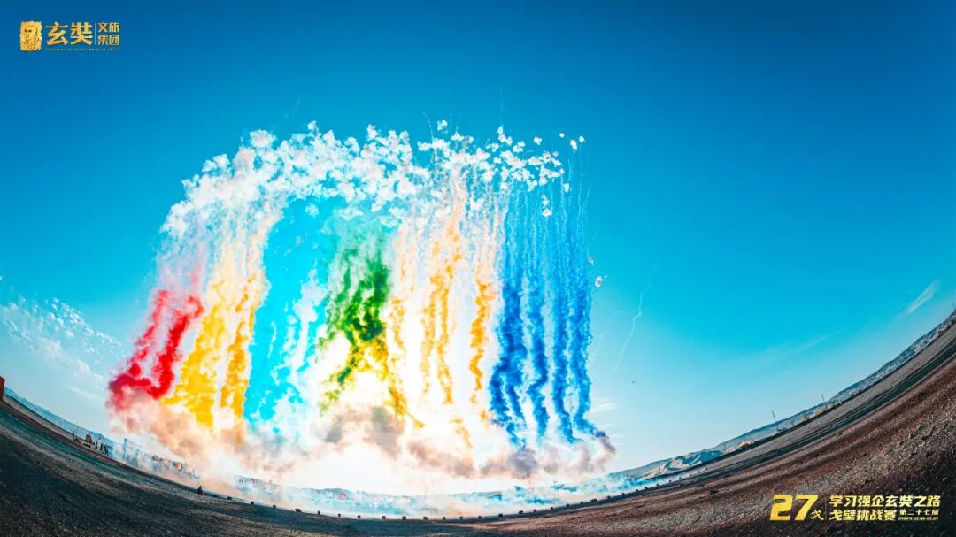 绚丽的彩烟冲向天际,苍茫的天地瞬间增添了一抹浓墨重彩。