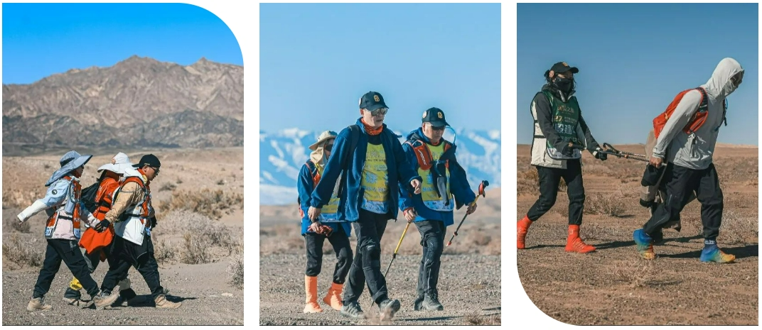 漫漫戈壁路,不少队员身体都接近了极限。脚泡钻心疼,浑身都酸痛,前行的阻力重重,但没有人愿意放弃。戈友们拧成一股绳,以团队之名互帮互助,共同前行。逆境之下,团队的力量无比的强大。