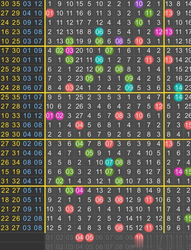 下面依然用历史开奖号码冷热走势,结合上期开奖号码特征,参考组合一组三区冷热合围号码。
