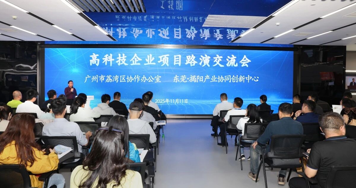 11月11日,广州市荔湾区协作办公室组织全区相关职能部门、国企及街道招商骨干50余人,赴东莞松山湖高新区开展专题学习考察。考察团重点参访东莞中科云计算研究院和东莞・揭阳产业协同创新中心(以下简称“莞揭创新中心”)交流,其反向飞地运营模式获高度认可,中心孵化企业专场路演因科技含量高、应用场景广引发强烈反响。