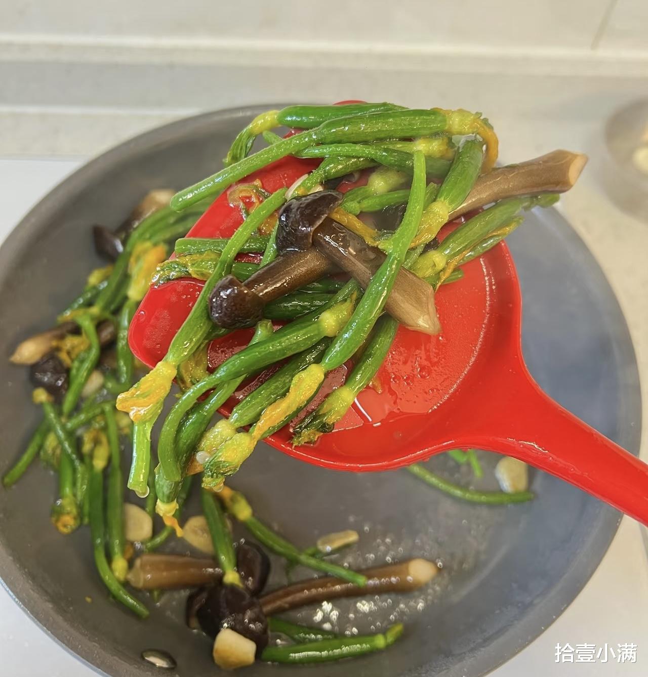 装盘的时候可以撒上一把葱花点缀,翠绿的黄瓜芽、金黄的鸡枞菌,再配上鲜红的小米辣,光看着就让人食欲大开。夹一筷子放进嘴里,黄瓜芽脆嫩爽口,带着淡淡的清甜,鸡枞菌绵软鲜香,吸满了酱汁的味道,两者搭配在一起,鲜而不腻,咸淡适中,配米饭的话,我能一口气吃两碗!