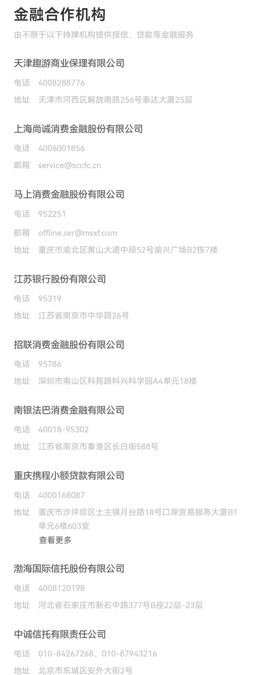“信用贷”则是现金贷产品,携程金融App显示,该产品合作机构众多。