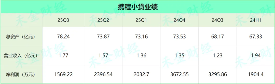 对比上半年数据,携程小贷在2025年第三季度实现营收1.77亿元,净利润1569.22万元。
