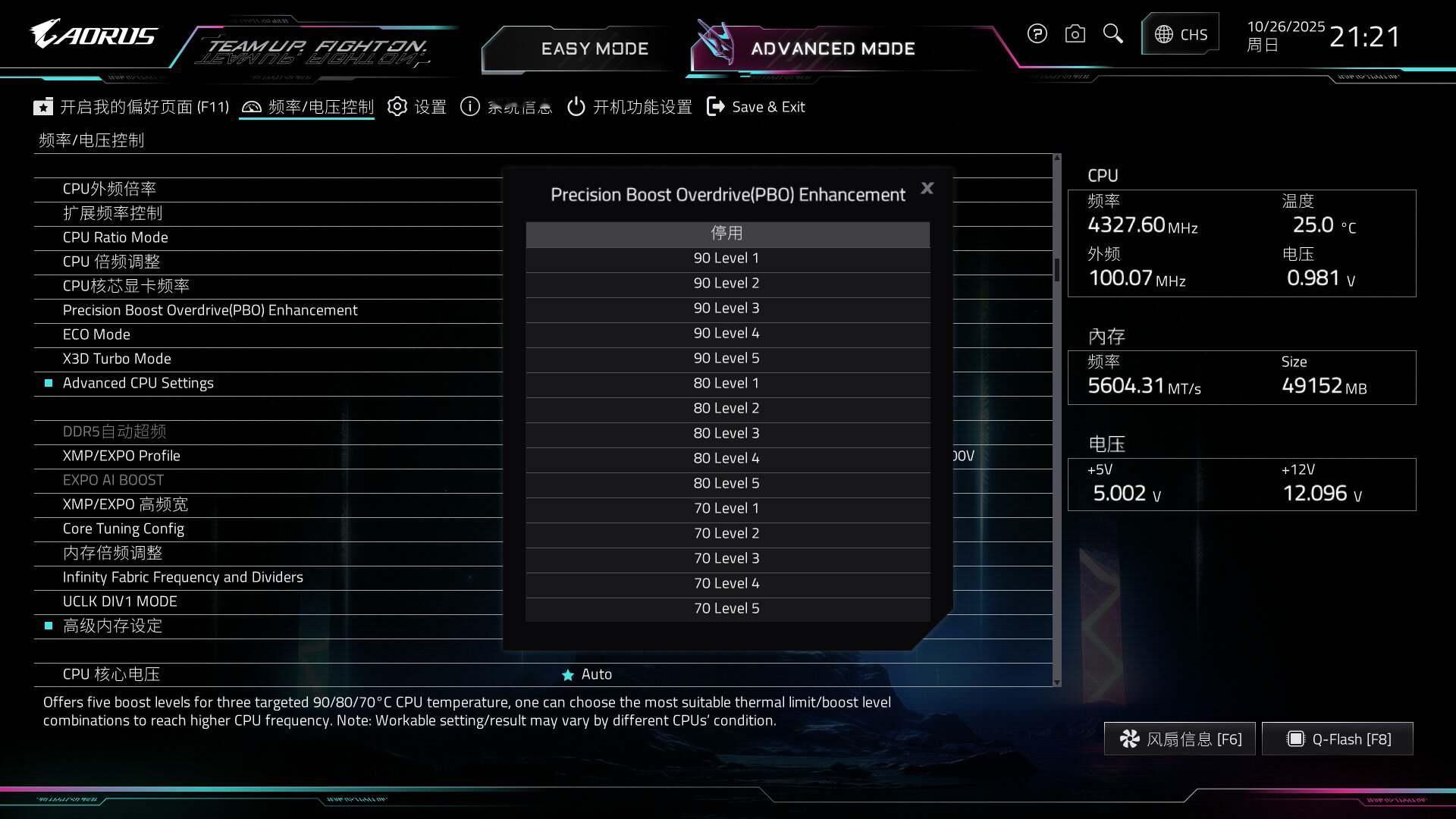 ▼技嘉 B850 电竞雕针对 AMD 处理器提供了多种优化模式,比如提升单核性能的 X3D 模式,以及“一 键 PBO”优化黑科技,后者更是拥有 15 个档位可调,所以处理器测试环节,分别进行了默频和 开启 PBO 优化后的对比