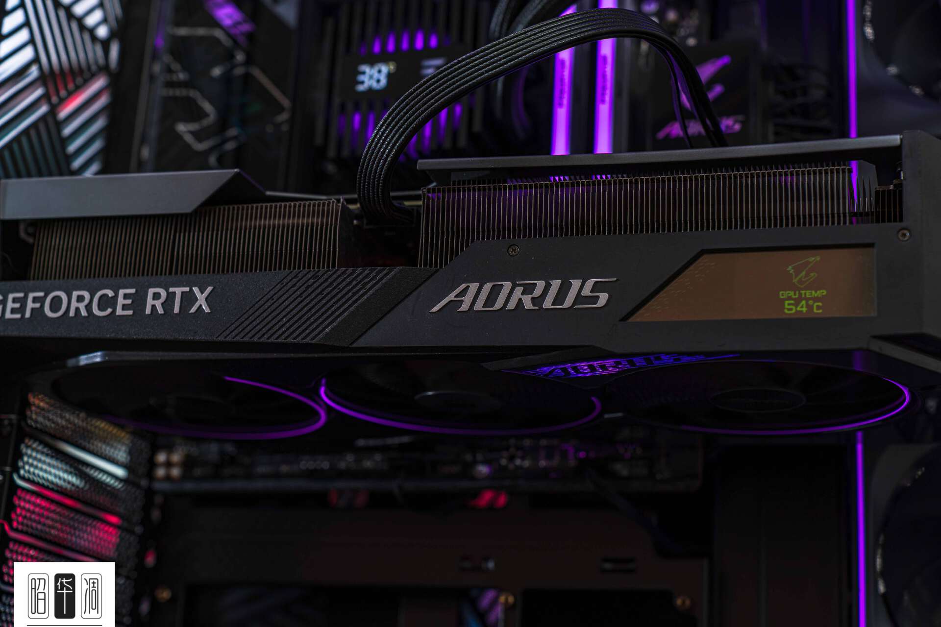 ▼显卡是技嘉的“超级雕” AORUS MASTER 4070Ti。作为技嘉的高端型号,其散热规模 一 向夸张,庞大的体积换来了强悍的散热效能。我特意用这块手头尺寸最大的卡来装机,也是为了给大家展示 TK-4 机箱的兼容性。当然,现在装机的朋友,更推荐蹲一波 50 系的超级雕。