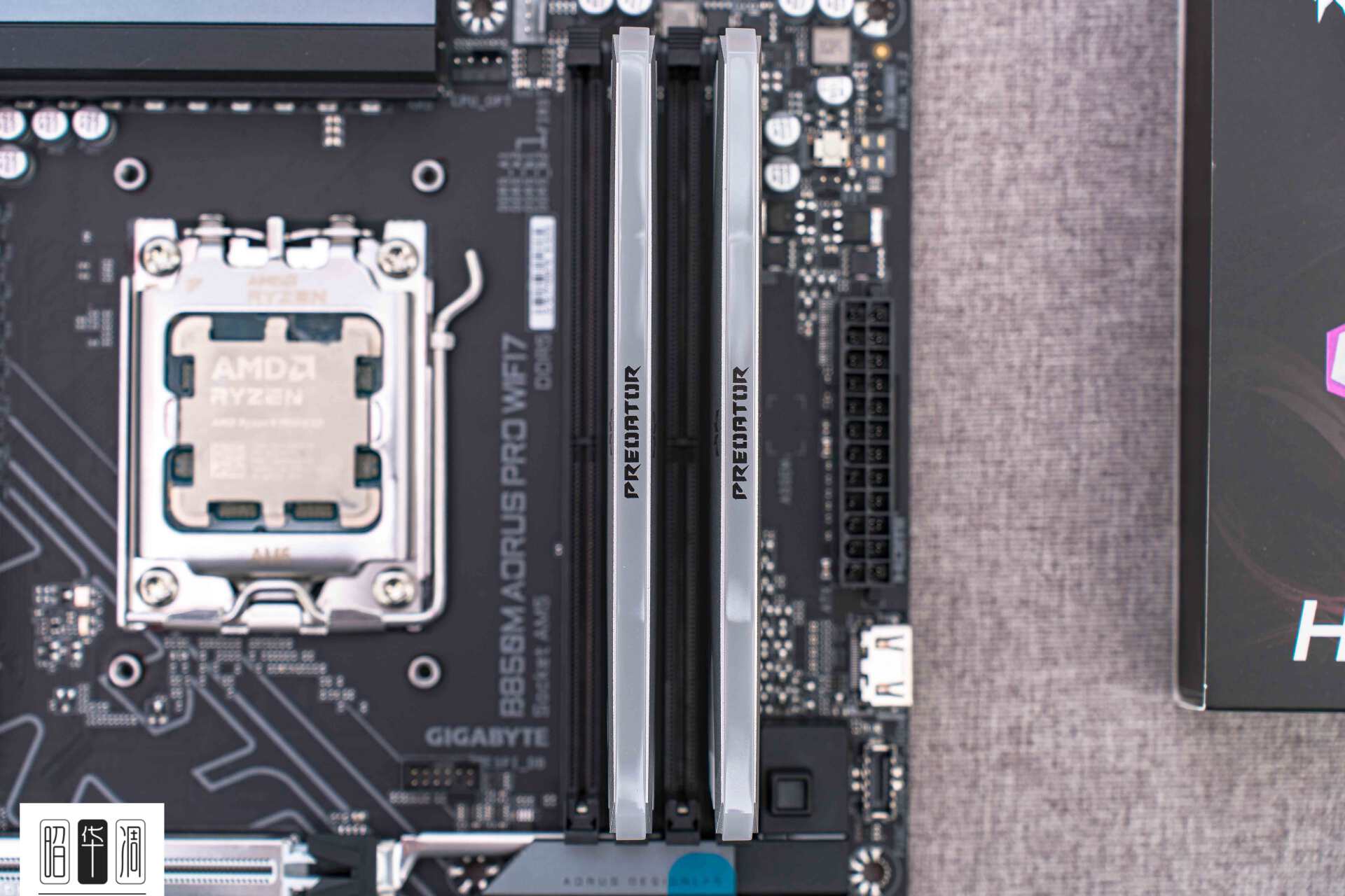 ▼内存条选用的是宏碁掠夺者 Hera 影锋。6000MHz C28 的时序规格,对于 AMD 平台来说堪称“甜品”搭档。48G (2x24G) 的总容量,无论是游戏还是生产力,都基本一步到位了。不得不庆幸入手得早,最近内存价格涨得有点疯狂。