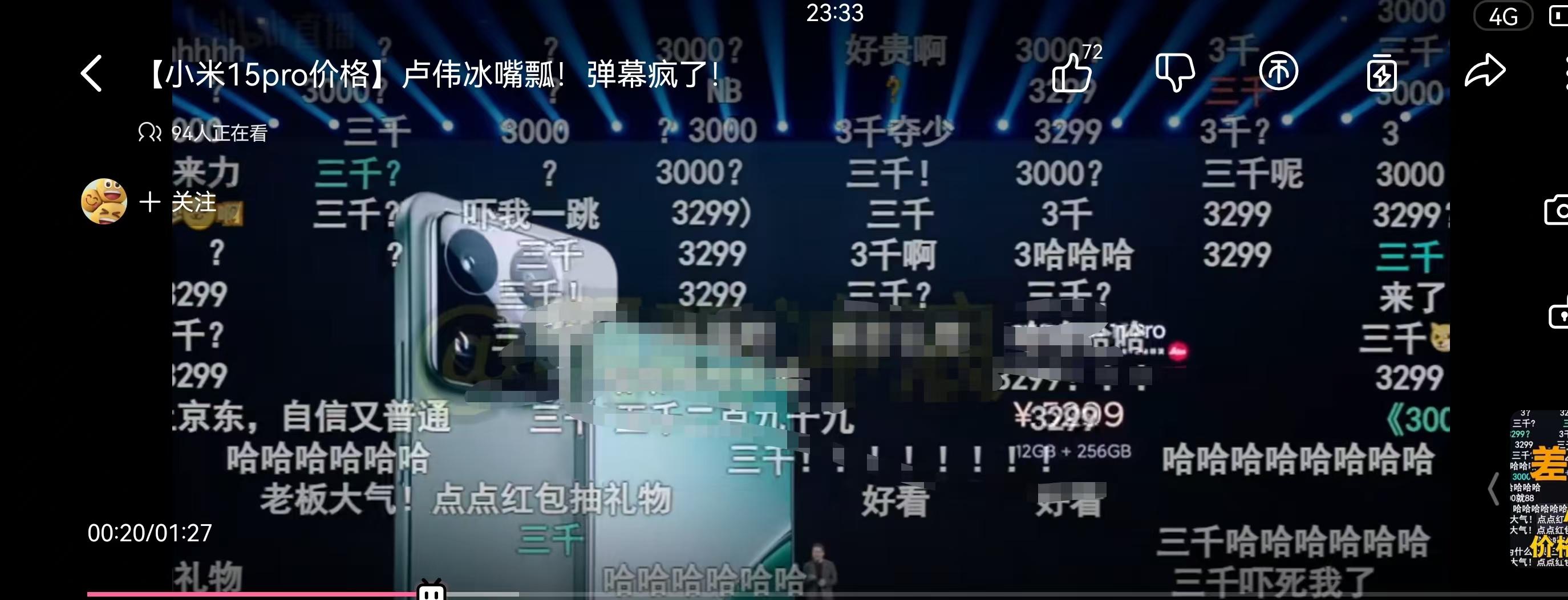 此外还有卢伟冰公布小米15 Pro定价的时候,喊出了3千的开头词,幸亏及时发现迅速改口,否则这个对于产品的品牌价值也会产生一定程度的影响。