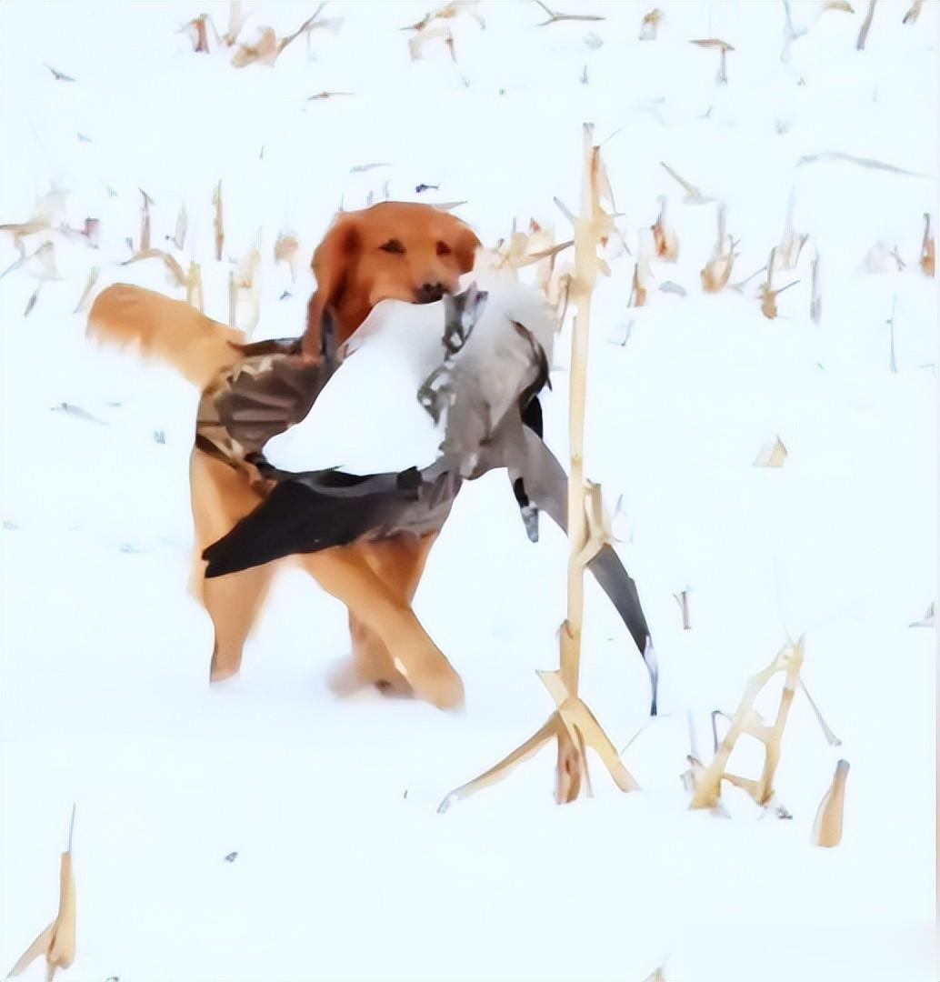 金毛的嗅觉灵敏度是人类的1200倍,能穿透水面闻到水下猎物的微弱气味;它们的视觉对移动的物体高度敏感,哪怕水面只有细微的波纹晃动,也会被判定为有猎物可追踪。下雪天的低温会让水中的鱼类、甲壳类动物活动变缓,更容易被金毛的敏锐感官捕捉,进而触发捕猎本能。