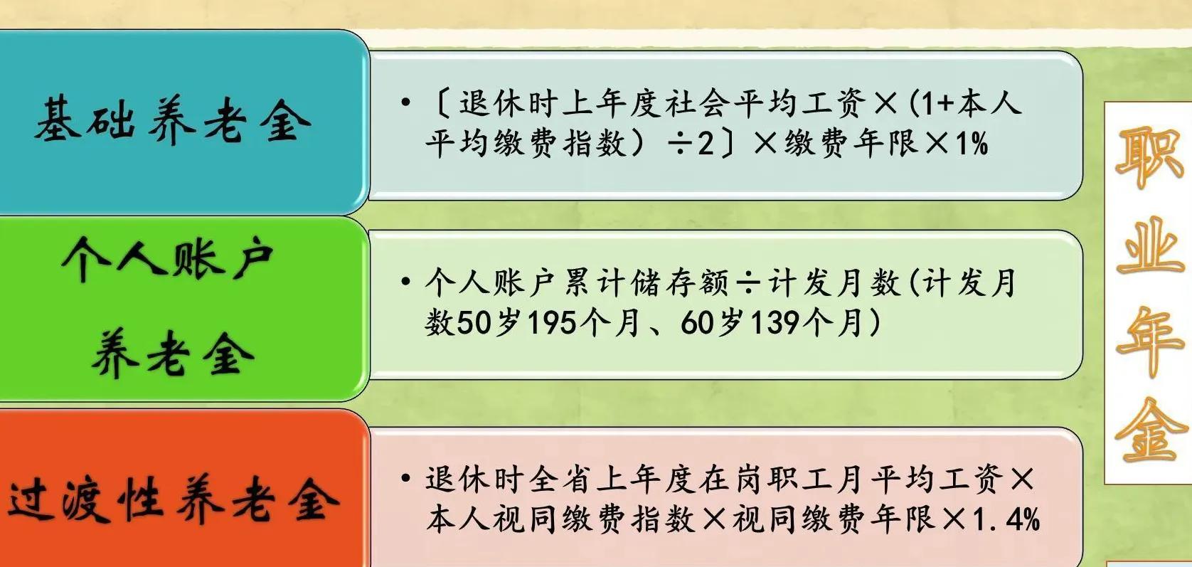 - 新办法:按照与企业职工相同的计发办法,但增加职业年金(单位缴纳8%,个人缴纳4%)