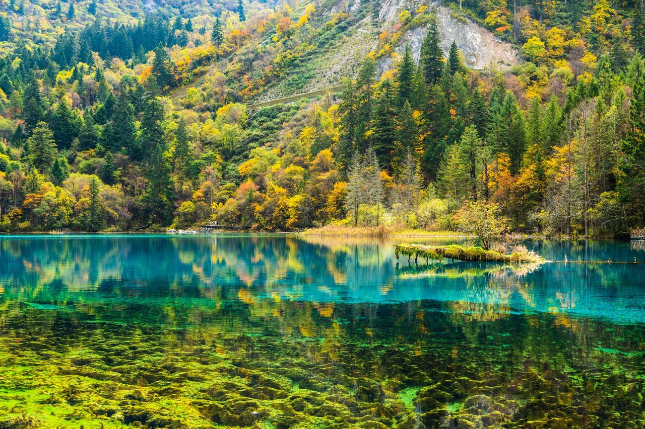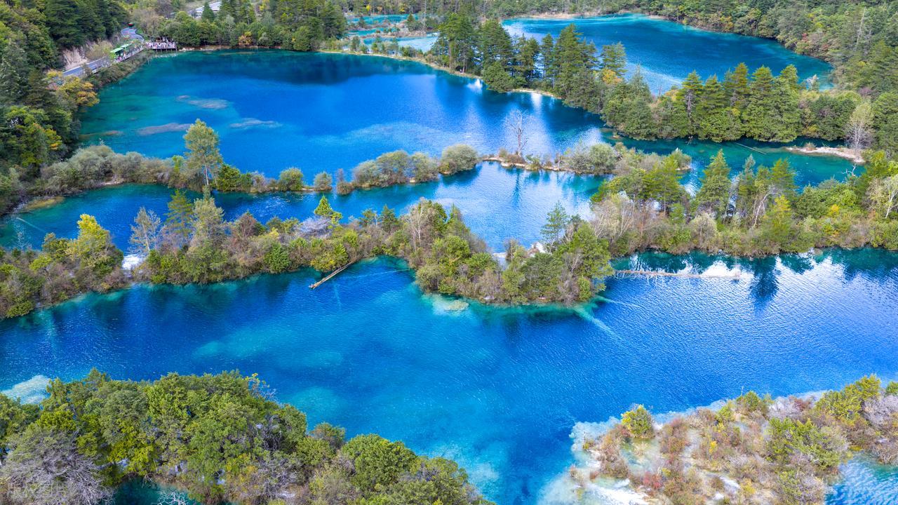 九寨沟拥有全球唯一的钙化池景观,108个海子随季节变幻颜色。秋季彩林与冬季蓝冰共同构成“地球调色盘”。经过多年生态恢复,九寨沟的自然资源得到了良好保护,诺日朗瀑布水量已恢复至震前水平。
