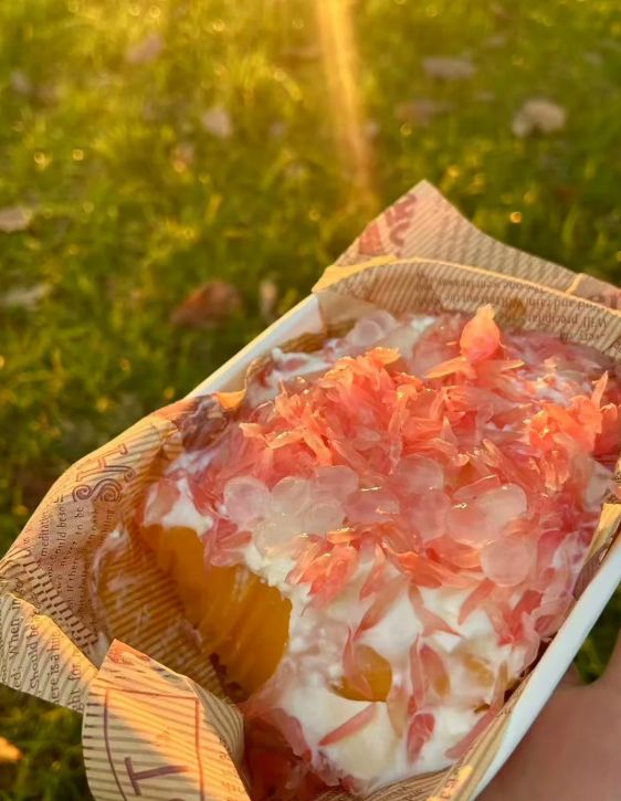 杨枝甘露,是传统与创新的完美结合。 这道诞生于香港利苑酒家的经典甜品,名字充满诗意。它以西柚、芒果、西米、椰浆和淡奶油为主要原料。成熟的芒果带来极致的甜润与金黄色泽,西柚果肉则贡献了微妙的酸苦,巧妙地平衡了甜度,并增添了颗粒感。煮至透明的西米,在齿间带来Q弹的乐趣,而椰浆与淡奶油的顺滑,则将所有元素温柔地包裹起来。一勺入口,芒果的香、西柚的酸、西米的滑、椰奶的醇次第绽放,酸甜交织,清爽不腻,是夏日里永不落幕的明星。