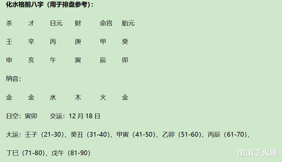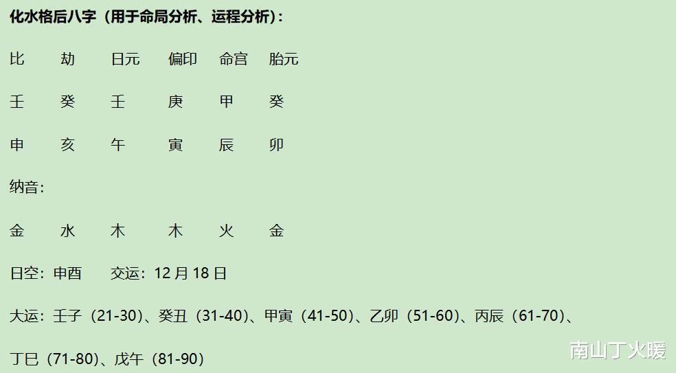 (人们常说,化水格喜逢水旺之运,但实际上还是要看大运与命局作用后的格局组合而论)