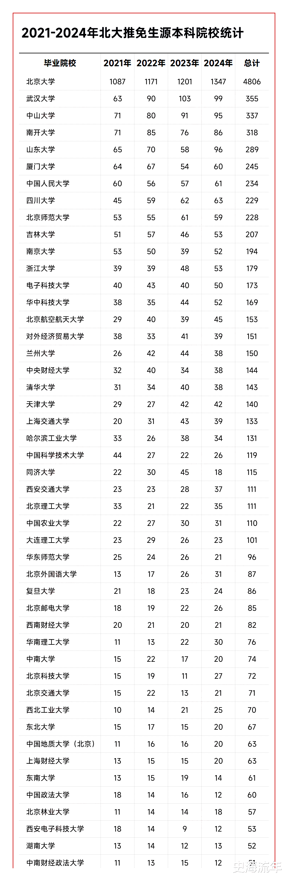 经济学院(76人)与光华管理学院(74人)紧随其后,延续了北大在经济学、管理学领域的传统优势,这类专业始终是金融、咨询等行业高端人才的主要储备池。
