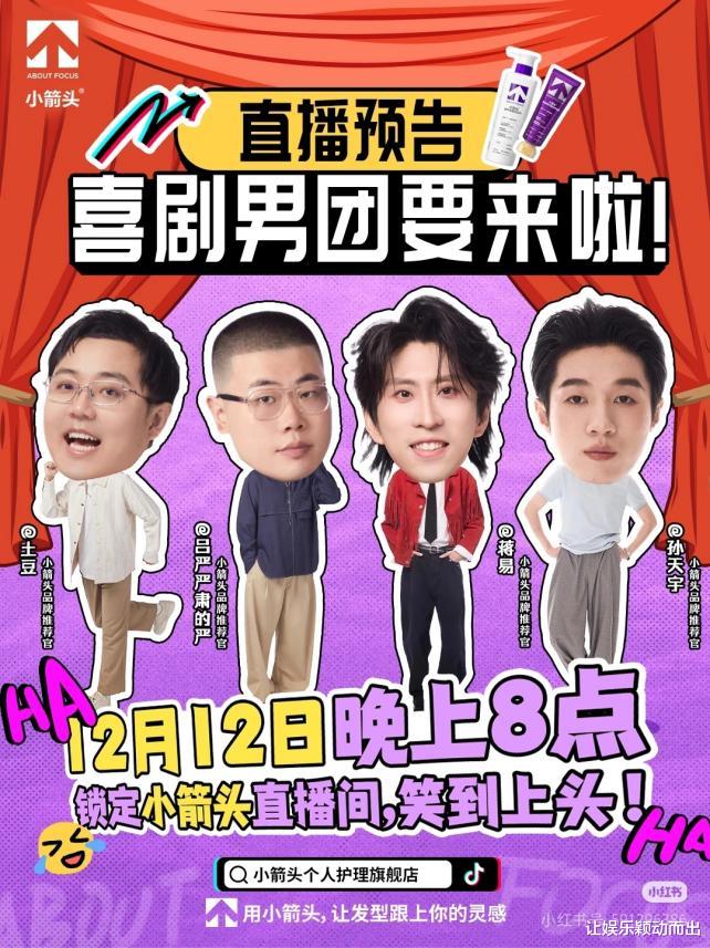 比如天猫在双十一期间释放出了杨雨光的代言短片,参半旗下的洗护品牌“小箭头”则一口气找来了土豆、吕严、蒋易、孙天宇四位喜人组成“喜剧男团”进行双十二直播预热。