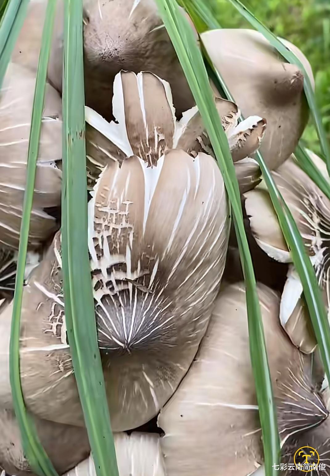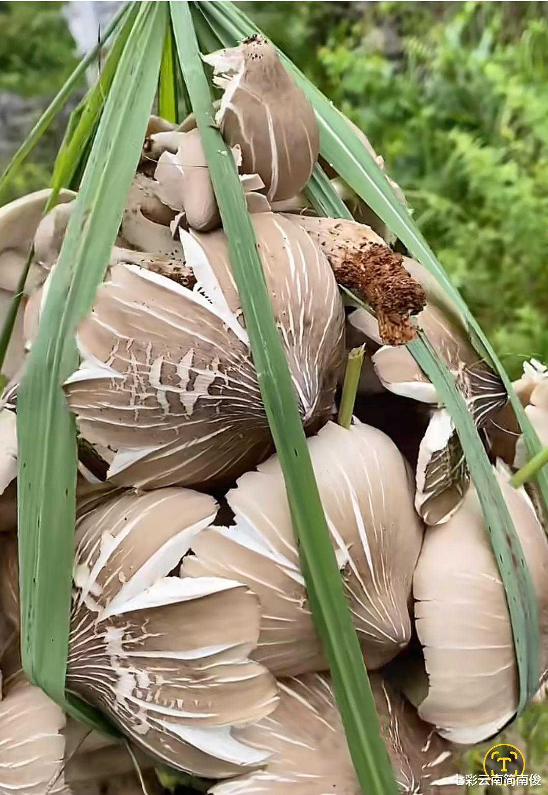 被茅草包扎后的鸡枞菌,完全不会掉出来,虽然菌身外露,但是提着走路,不必担心鸡枞会掉出,多根茅草包扎后,在顶端打个结,捡菌人便能顺利将鸡枞菌提回家中。