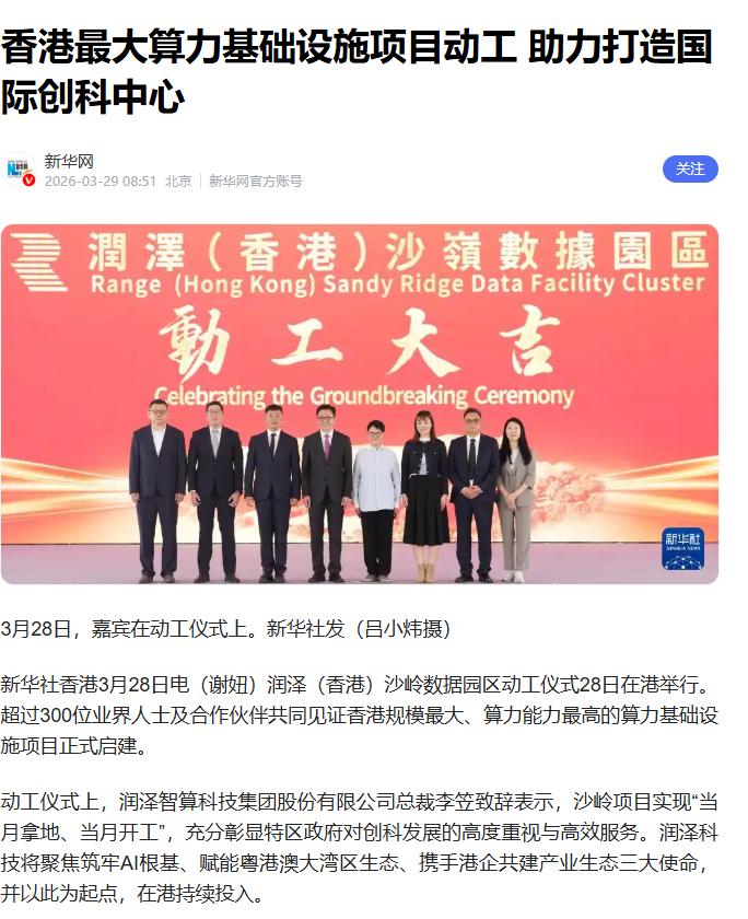 香港最大算力基础设施项目动工 助力打造国际创科中心