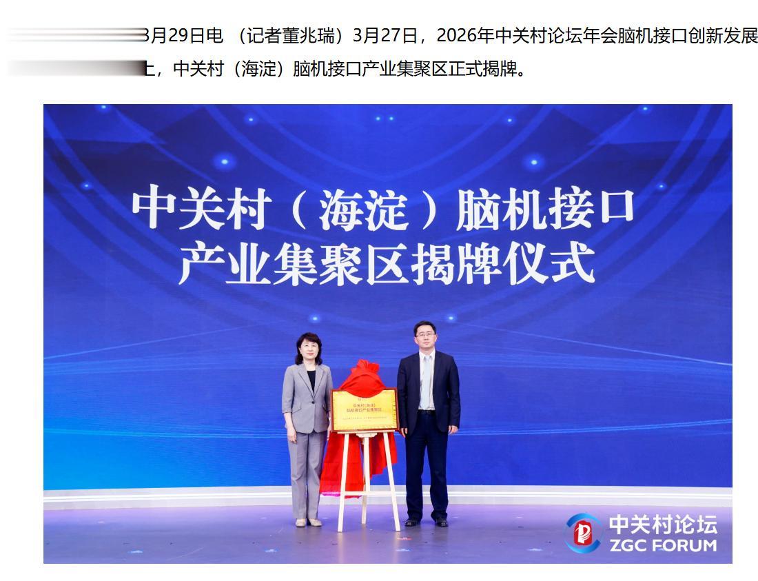 中关村(海淀)脑机接口产业集聚区揭牌
