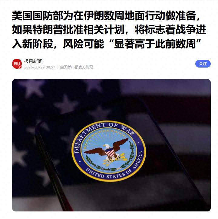 美国防部正为在伊朗开展数周地面行动做准备