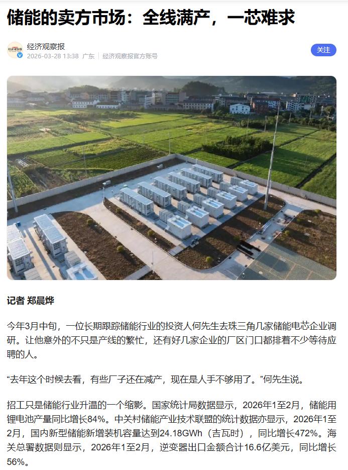 储能的卖方市场:全线满产,一芯难求