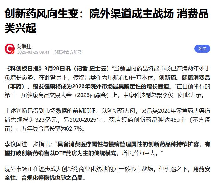 创新药风向生变:院外渠道成主战场 消费品类兴起