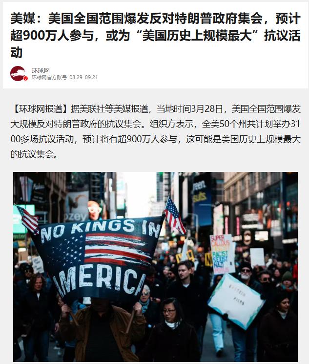 美国全国范围爆发反对特朗普政府集会 预计超900万人参与 或为“美国历史上规模最大”抗议活动