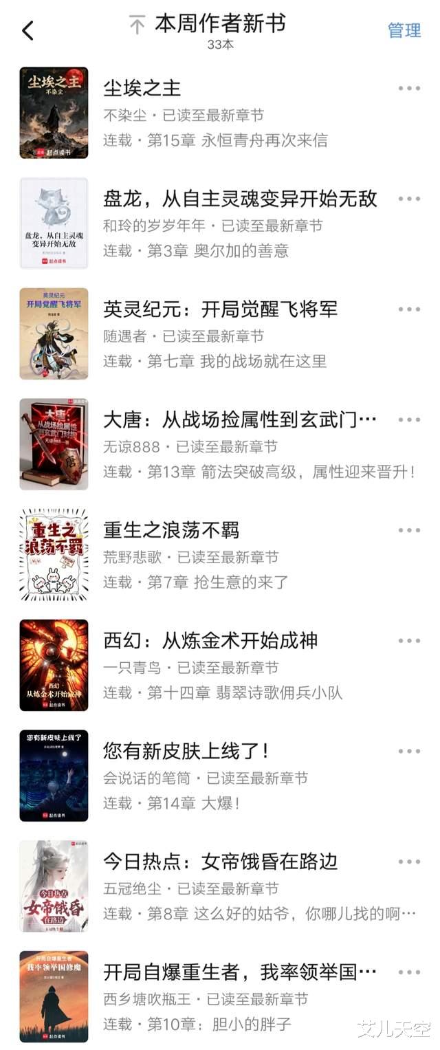 ⑧神见《天地至尊》,《无敌天下》《神剑无敌》的作者,上个月就开书了,九天首发,这周才上了起点渠道的。没上渠道都不知道他已经开了新书,上本《神剑无敌》就是九天那边杀出来的,起点这边也拿到了精品成绩。