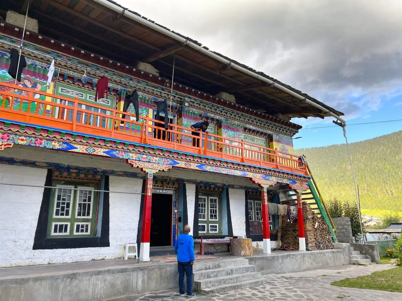 即便是传统的藏式民居其实也有些改变,原先一层多是堆放杂物饲养牲畜一般不会住人,现在生活水平的提升,会有专门的房舍来实现这一功能,反倒是顶楼会做一个大的棚舍,既可以晾晒衣物也可以放置一些杂物。