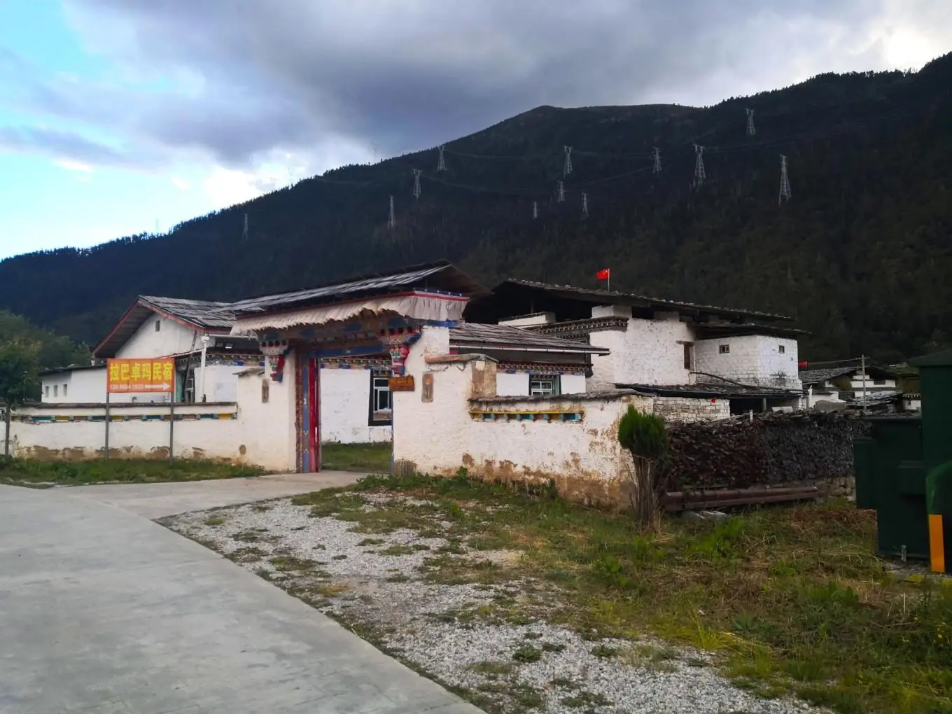 这个村子可能是政府引导打造的民族度假旅游村,家家户户都搞起民宿,有的外表看上去颇有些情调,落地的大窗,外面便是牧场和森林。