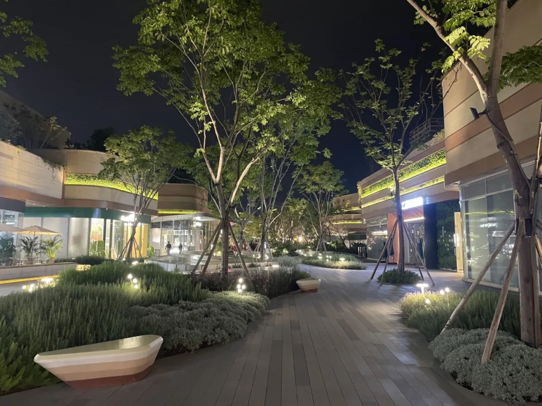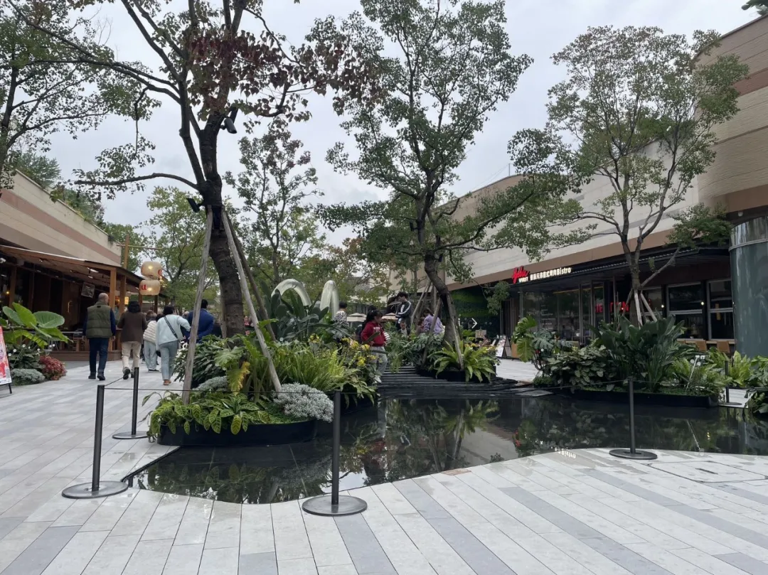 光环花园城楼顶做得奇特,中间是流水做动线,搭配植被、造型,从而给人既能购物,又能观赏的体验感,更重要的是,孩子可以在这里玩耍,大人累了,可以坐在水池旁休息,这种具有独特景观造型的设计,其他商圈是没有的。