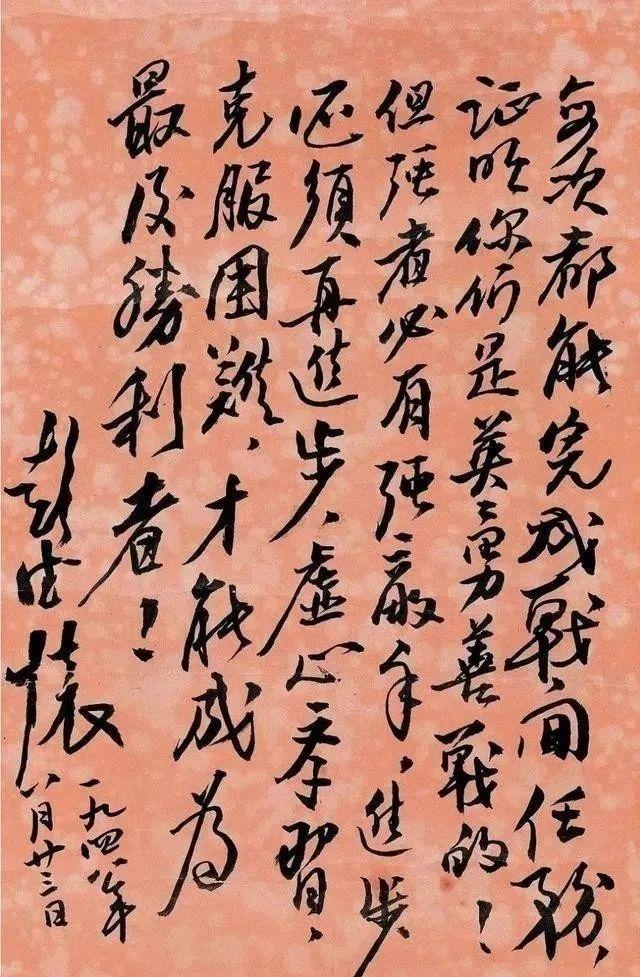 在彭德怀元帅写给毛主席的信件中,其书法的展现尤为引人注目,堪称书法艺术的一次精彩演绎。这封信的书写不仅流露出一种痛快淋漓的豪迈之情,更巧妙地融合了毛主席书法的精髓,展现出了一种精妙绝伦的艺术境界。