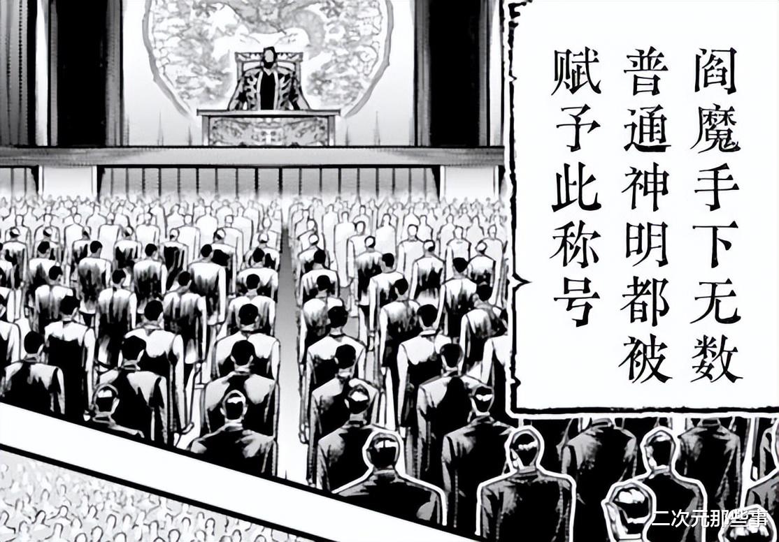 值得一提的是,这部漫画里的阎魔大王不但地位高,就连宙斯对他都非常尊敬,不但多次用“阎魔阁下”这样的尊称来称呼他,而且阎魔大王使用“阎魔账”的时候,宙斯还说自己有幸能看到这个招式。要知道这部漫画里的宙斯可以说是真正的众神之主,不但是瓦尔哈拉评议会的议长,而且实力也是登场神明里最强的,名副其实的最强神明。