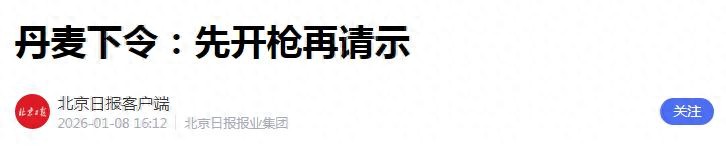 白宫发出军事威胁,丹麦希望“澄清误解”,“美国需要格陵兰岛”令欧洲为难-发稿时间:2026-01-08 06:51:00 作者:萧达 王逸 来源: 环球时报