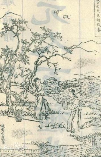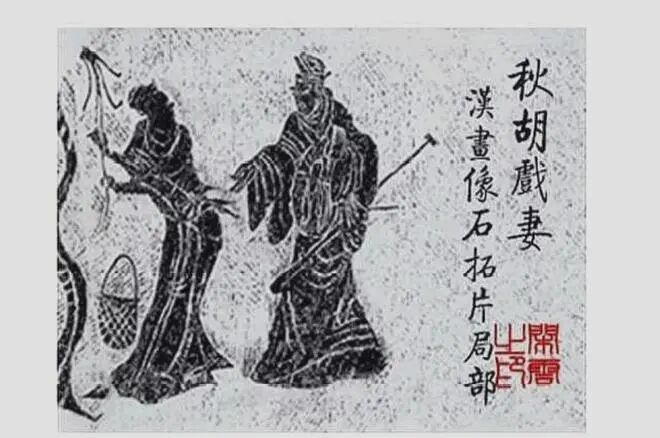 秋胡戏妻的故事最早见于汉刘向《列女传·鲁秋洁妇》,描写情节很简单:秋胡,“春秋鲁人﹐婚后五日﹐游宦于陈﹐五年乃归﹐见路旁美妇采桑﹐赠金以戏之﹐妇不纳。及还家﹐母呼其妇出﹐即采桑者。妇斥其悦路旁妇人﹐忘母不孝﹐好色淫佚﹐愤而投河死。”