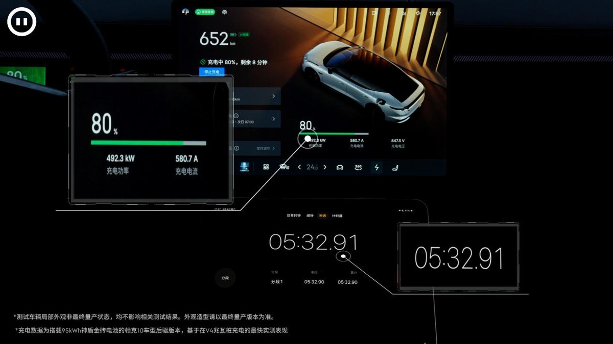 领克10搭载900V 95度神盾金砖电池,CLTC工况续航最高可达816km,跨省长途出行无需频繁寻找充电桩,彻底告别里程焦虑。搭配V4极充桩,可实现1秒极充2公里,10%-70%补能仅需4分22秒,10%-97%也仅需8分42秒,补能速度媲美燃油车加油。