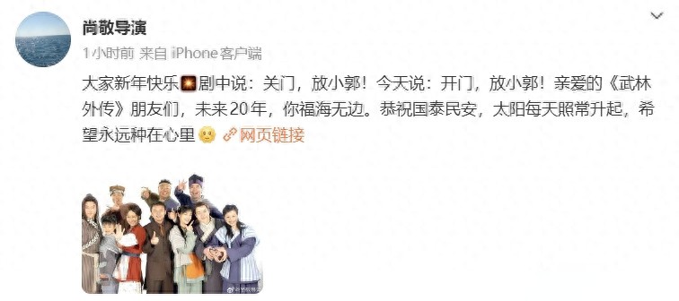 《武林外传》导演发文,他说到“开门,放小郭”有一种又开心又心酸的感觉,原来20年期限到了,郭芙蓉终于重获自由了。