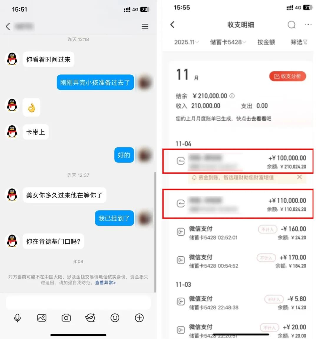 黄女士卡内果然收到两笔转账