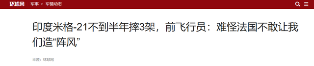 环球网《印度米格-21不到半年摔3架,前飞行员:难怪法国不敢让我们造“阵风”》