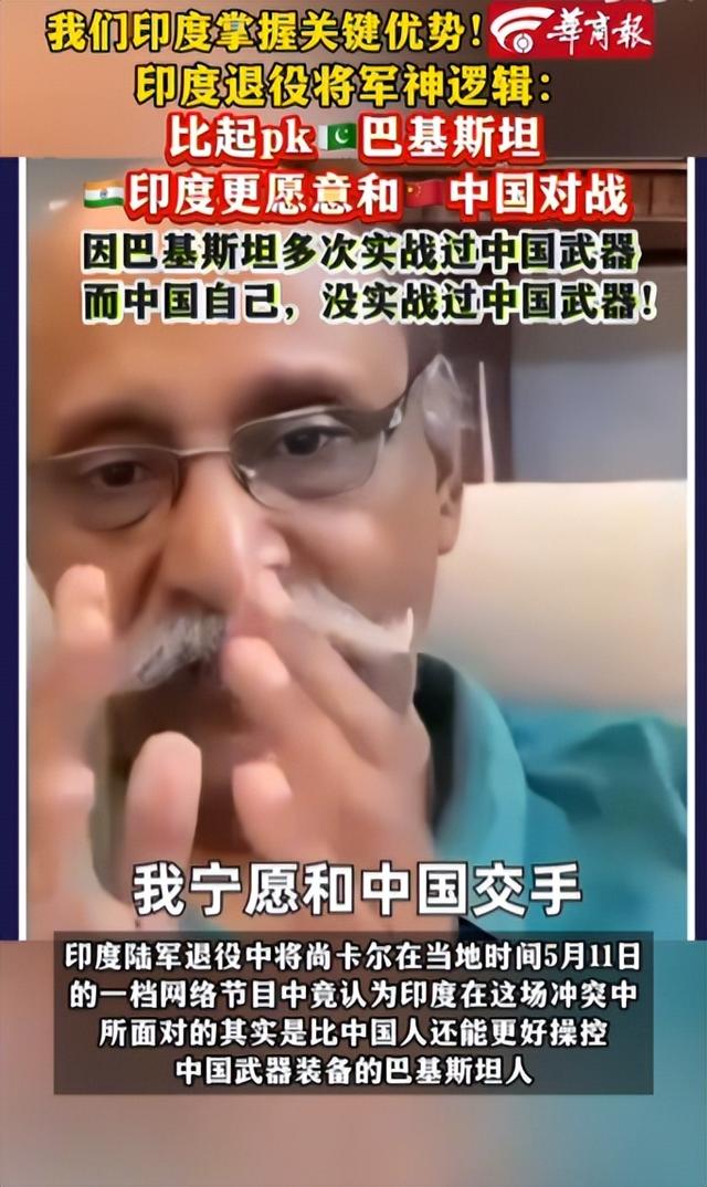 华商报《我们印度掌握关键优势!印度退役将军神逻辑:比起巴基斯坦印度更愿意和中国对战,因巴基斯坦多次实战过中国武器 而中国自己,没实战过中国武器!》